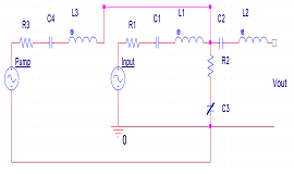 在上面的電路中,變容二極管是元件C3。該RLC電路的腿在泵和輸入信號可以被設計為欠阻尼,所以泵和輸入信號會產生一定的諧振。這允許通過簡單地調整輸入和泵浦頻率來改變變容二極管上的電容調制。