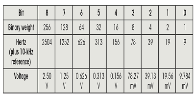 4.該表顯示了刻度3的頻率到電壓的轉(zhuǎn)換。