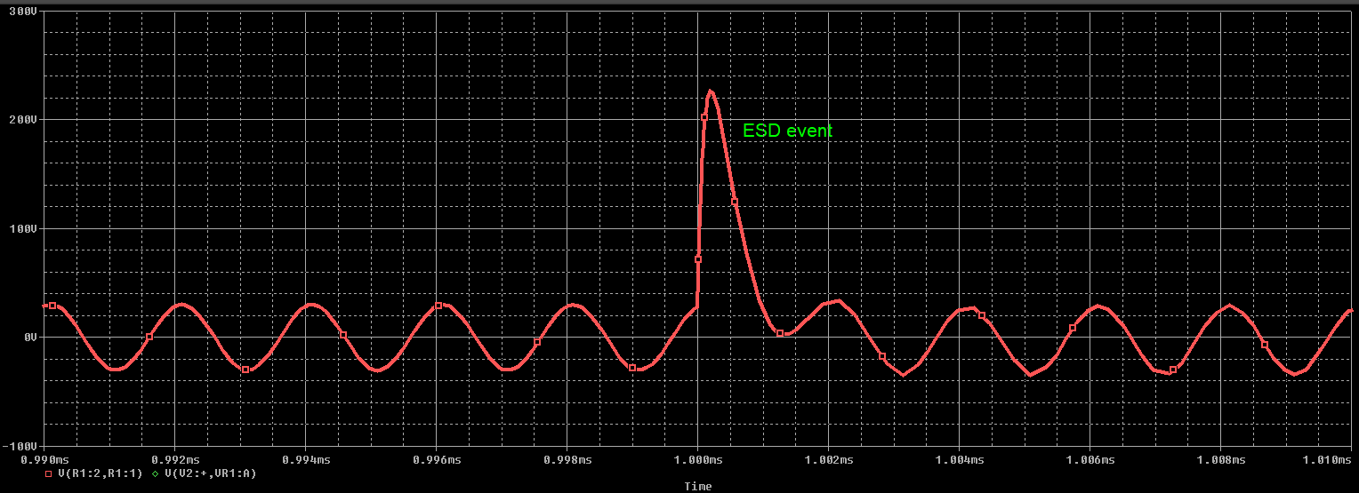 ESD事件的SPICE EMC仿真結果
